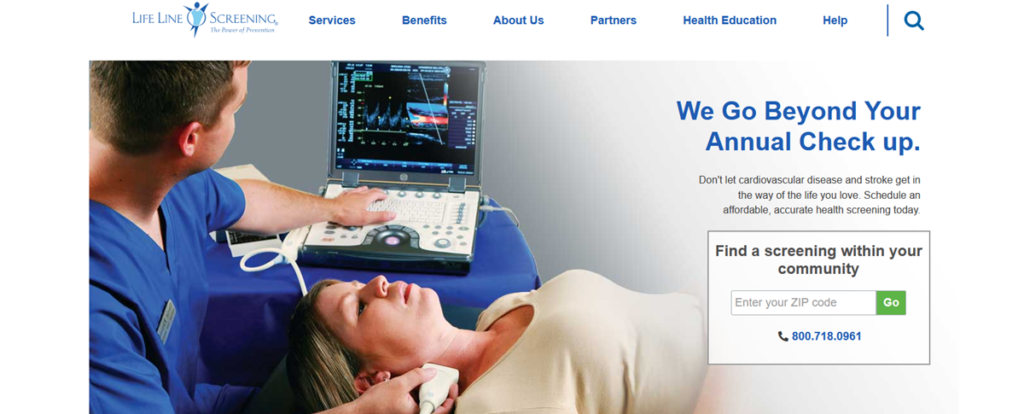 Remitir a sus visitantes a Life Line Screening significa que pueden elegir entre una serie de opciones de detección, que incluyen ultrasonido, análisis de sangre o electrocardiograma limitado. En total, ofrecen 15 tipos diferentes de controles médicos que cubren desde enfermedades cardíacas hasta cáncer.