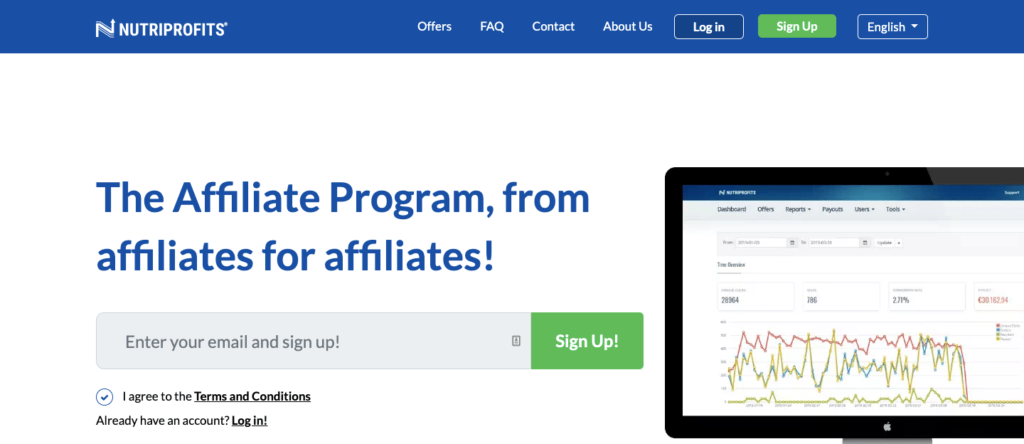 Si le gusta promocionar una amplia gama de productos afiliados, NutriProfits podría ser el programa de afiliados de salud para usted. ¿Por qué? Porque se jacta de ofrecer ofertas de afiliados de marcas en múltiples nichos de salud y bienestar, incluida la pérdida de peso, la caída del cabello y el cuidado de la piel.