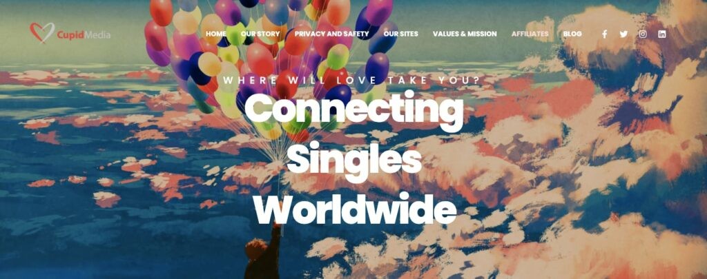 Cupid Media es la empresa con sede en Australia detrás de algunos de los sitios de citas de subnichos más grandes del mundo. Su cartera incluye actualmente 32 sitios de citas diferentes y dos blogs que ofrecen servicios de citas personalizados.