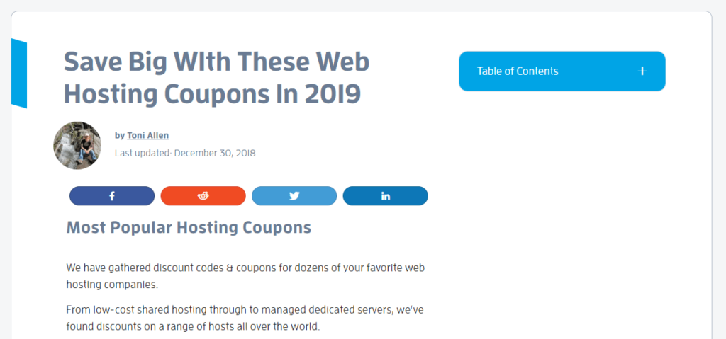 - Otros afiliados crean sitios basados únicamente en cupones de alojamiento web, mientras que Who Is Hosting This lo ha integrado en su diseño general.