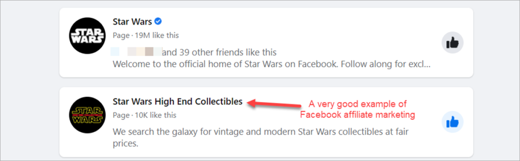 Por ejemplo, si estás en el nicho de coleccionables de Star Wars, busca grupos o páginas de ciencia ficción.