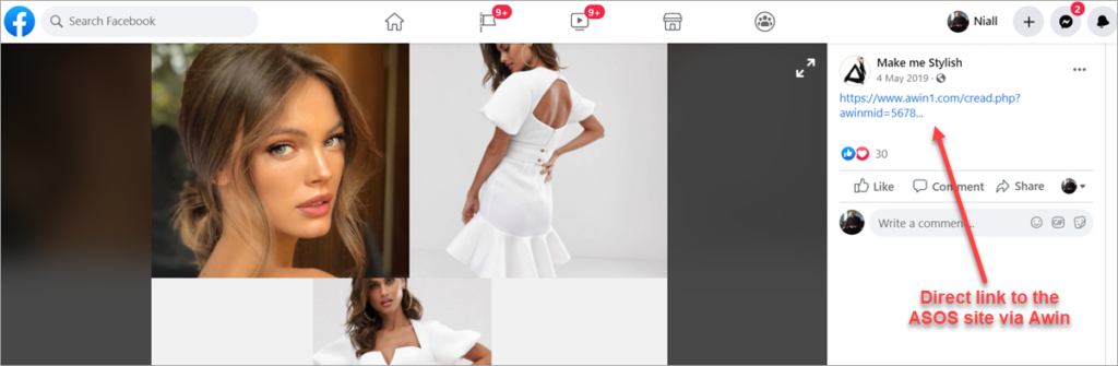 - Enlace directo desde sus publicaciones de Facebook a ofertas de afiliados