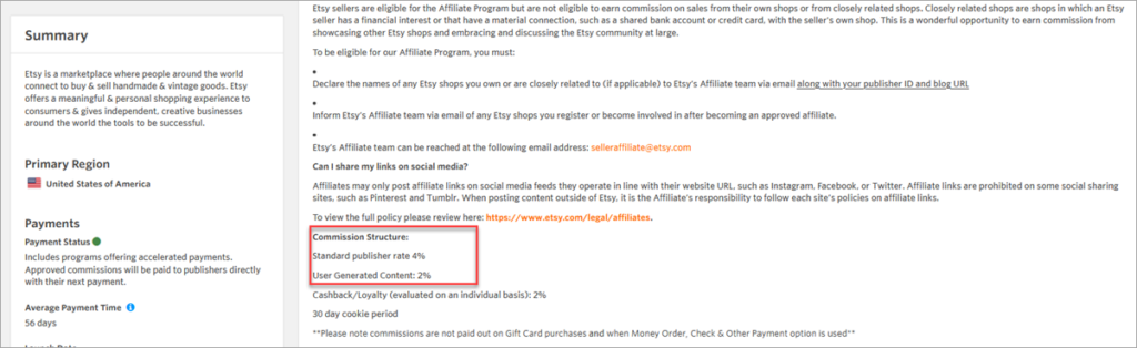 Pero si decides promocionar los productos de Etsy a través de su programa de afiliados, podrás esperar que te paguen a tiempo.