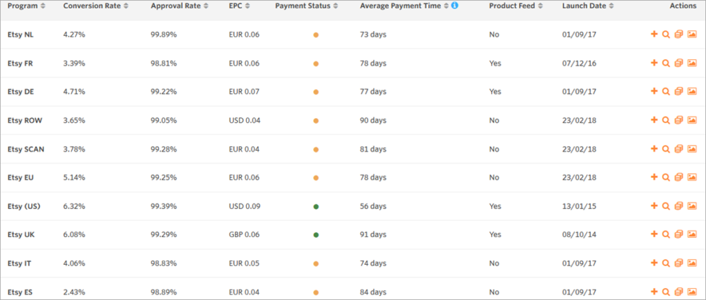 El programa de afiliados de Etsy está gestionado por Awin para Norteamérica, Europa y el resto del mundo.