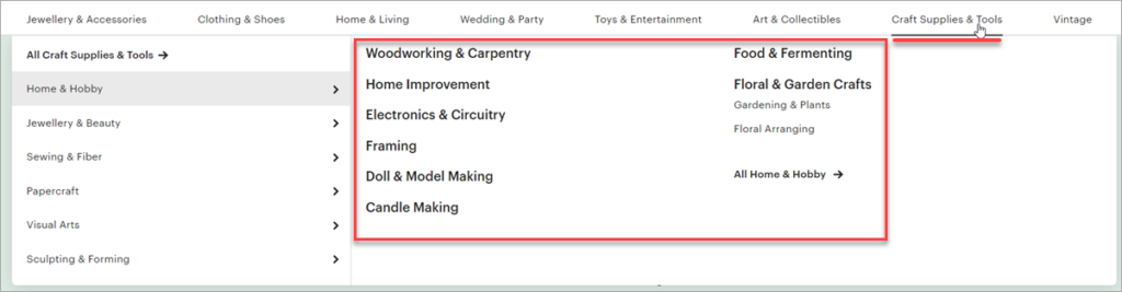 Puede parecer una gama limitada de productos con los que trabajar, pero hay subcategorías dentro de cada categoría principal.