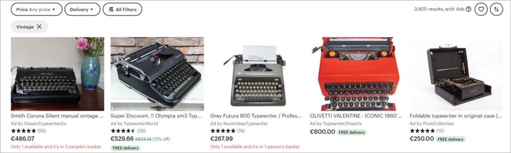 - Son líderes del mercado en el nicho de lo vintage y la artesanía: Etsy es único en su tipo.