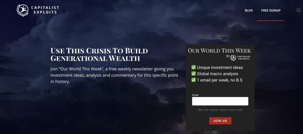 Capitalist Exploits se dedica a encontrar oportunidades de inversión asimétricas de riesgo/recompensa. O, para aquellos que no hablan de finanzas, vende cursos que ayudan a las personas a obtener un gran rendimiento del dinero que tanto les costó ganar.