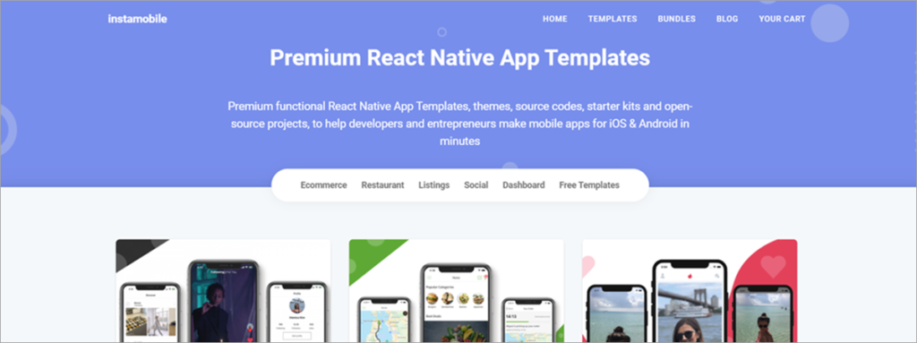 Todo basado en el framework nativo ‘React’ y plantillas diseñadas para ello.