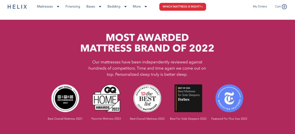 Según Forbes , la empresa estadounidense de colchones Helix Sleep vende el mejor colchón para personas que duermen de lado. Sus productos ofrecen una prueba gratuita de 100 noches y se envían gratis a todo Estados Unidos. Cada colchón Helix está hecho a medida en los EE. UU. y está cubierto por una garantía de 10 años, que se incrementa a 15 años para los colchones Helix LUXE.