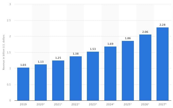 El mercado mundial de software de marketing por correo electrónico valía mil millones de dólares en 2019 y se espera que alcance los 2.300 millones de dólares en 2027:
