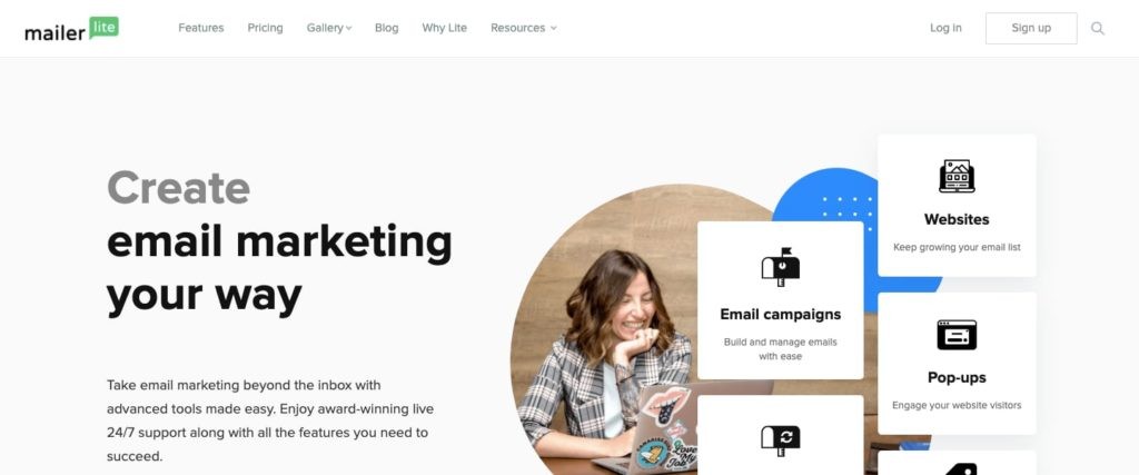 MailerLite es una solución de marketing y correo electrónico que ofrece un conjunto completo de funciones, incluso si su nombre sugiere lo contrario. Entre muchas otras cosas, ayuda a los usuarios a ejecutar campañas de marketing por correo electrónico atractivas y de gran impacto gracias a su editor de arrastrar y soltar fácil de usar.