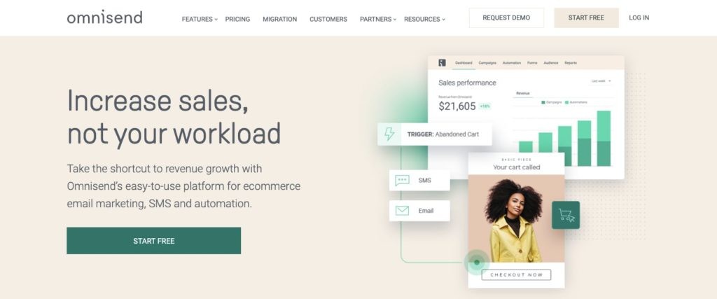 Omnisend es una solución de automatización de marketing, SMS y marketing por correo electrónico fácil de usar. De hecho, es tan fácil que los nuevos clientes pueden implementar su primera automatización en solo media hora.