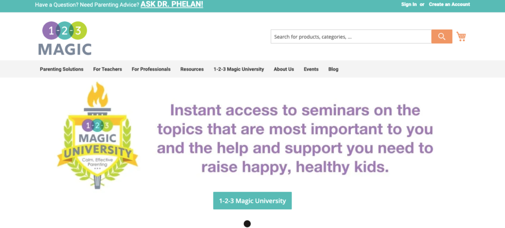 1-2-3 Magic vende libros, DVD y cursos en vídeo a pedido que enseñan a los padres cómo disciplinar a sus pequeños de manera efectiva. El programa fue desarrollado por el psicólogo clínico registrado Thomas W. Phelan, Ph.D., miembro de la Asociación Estadounidense de Psicología que ha trabajado con niños y familias durante más de 35 años.