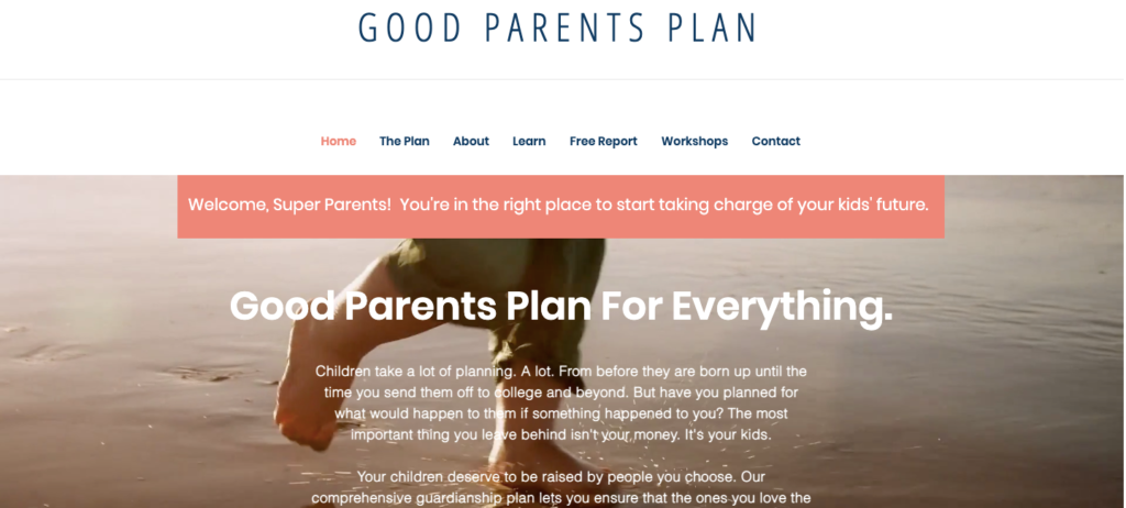 Good Parents Plan es un paquete de tutela independiente para padres de menores que contiene información esencial sobre historiales médicos, filosofías de crianza y valores familiares. Garantiza que, si ocurre lo peor, los padres sabrán que sus pequeños serán atendidos según sus deseos.