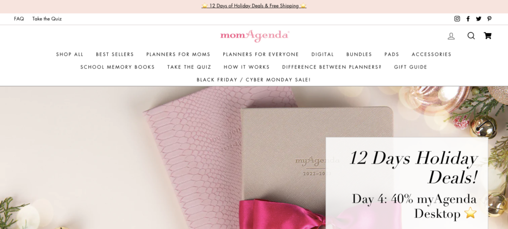 momAgenda diseña y vende agendas y otros productos organizativos creados pensando en las mamás ocupadas. Tiene un excelente reconocimiento de marca, ya que ha sido promovida por madres famosas como Reece Witherspoon y Cindy Crawford. La empresa momAgenda también ha aparecido en la revista Real Simple y en el New York Times.