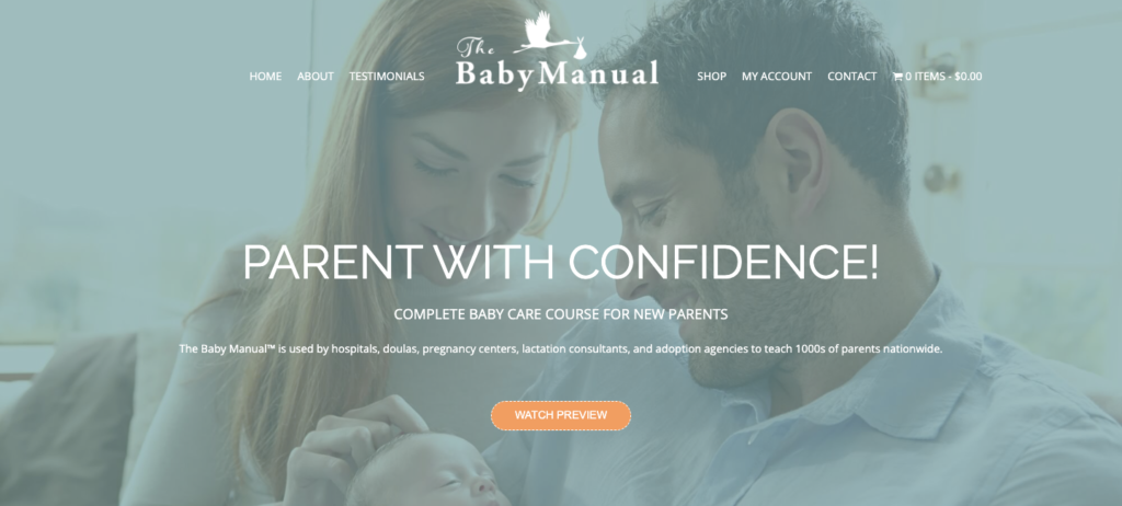 El Manual del bebé es una serie de cursos en vídeo galardonados destinados a resolver algunos de los desafíos más comunes que enfrentan los padres primerizos. Sus videos están dirigidos por profesionales médicos en ejercicio, expertos de la industria y padres reales. Los materiales educativos de la empresa son utilizados por agencias de adopción, hospitales, centros de embarazo, consultores de lactancia y doulas en todo Estados Unidos.