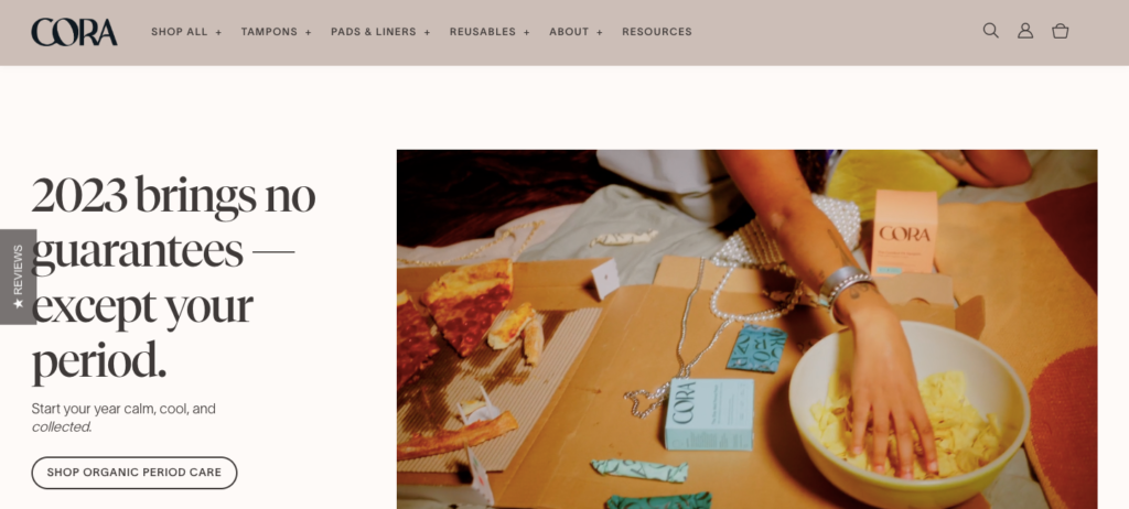 Cora es una empresa de salud femenina que vende tampones, toallas sanitarias, líneas para la vejiga, copas y paños corporales, todos ellos elaborados con ingredientes naturales que no contienen toxinas dañinas.