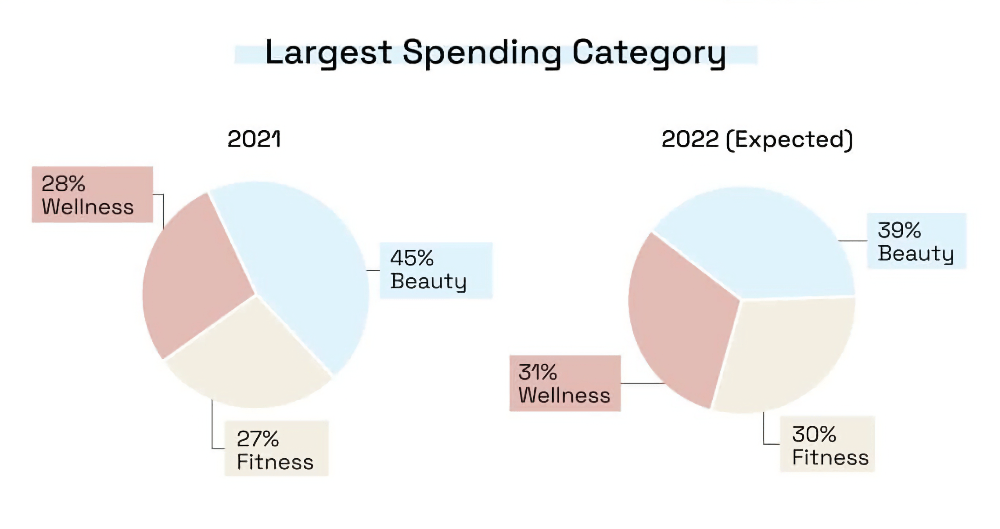 En promedio, las mujeres estadounidenses gastan 124 dólares al mes en sus rutinas de belleza, fitness y bienestar, y aproximadamente un tercio de esa suma se destina a productos de salud y bienestar.