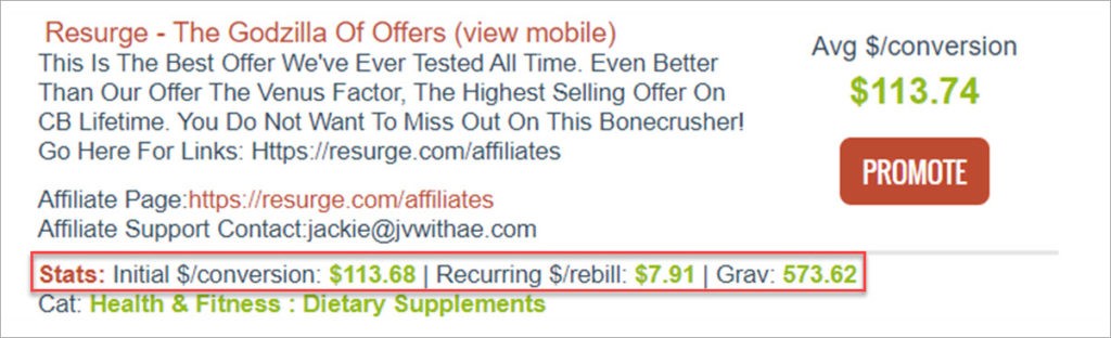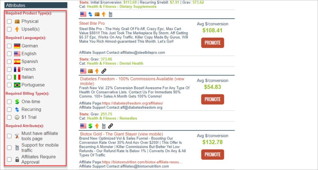 Aquí hay una muestra aleatoria de los productos con mayor conversión en ClickBank para mostrarle lo que quiero decir: