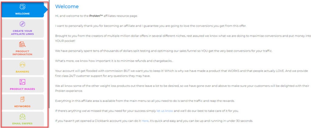 También puede ver un video de “Bienvenida”… que sutilmente intenta aumentar las ventas de los proveedores de ClickBank con una membresía mensual.