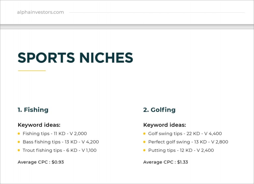 Otra cosa que me molestó fue que algunos de los nichos sugeridos eran totalmente irreales.