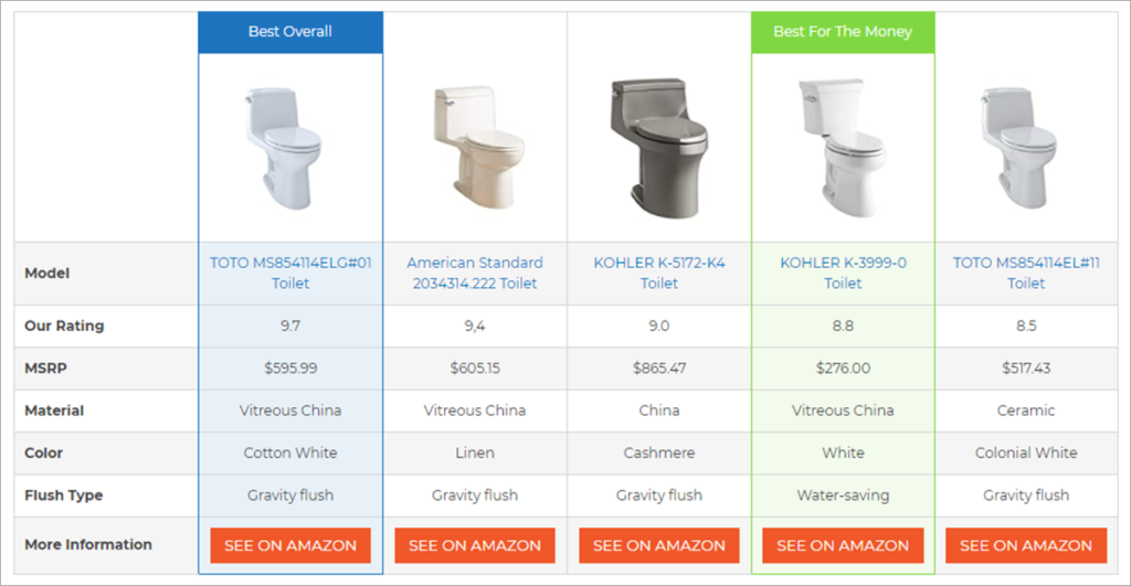 Cada página también tiene esas tablas de comparación tan importantes, creadas con el complemento AAWP :