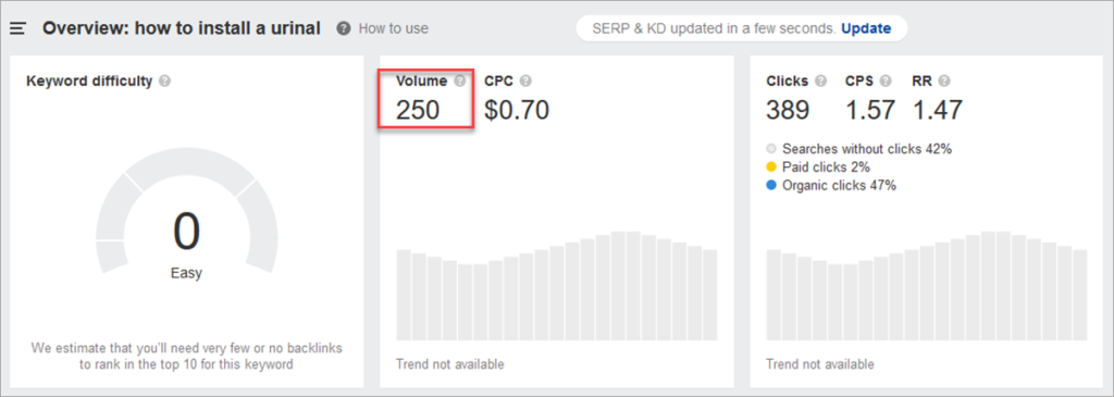 Un poco de investigación de mi parte arrojó palabras clave que tenían más volumen y habrían sido igual de fáciles de clasificar.