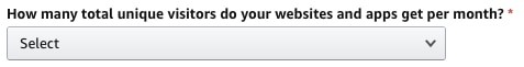 Si su sitio web sólo existe desde hace una semana, no le diga a Amazon que está generando 500.000 visitas únicas al mes.