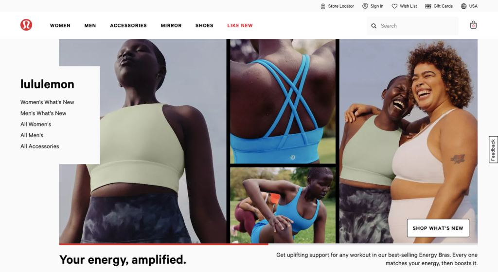 Esto se refleja en la gran cantidad de productos de yoga disponibles en el sitio web de Lululemon, que incluyen ropa, accesorios e incluso un espejo inteligente que ofrece más de 10,000 clases de contenido de cursos en línea en más de 50 géneros.