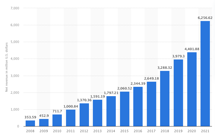 Hoy en día, hay más de 570 tiendas Lululemon y 25.000 empleados en todo el mundo, mientras que los ingresos de la empresa alcanzaron más de 6.200 millones de dólares en 2021, seis veces más que una década antes.