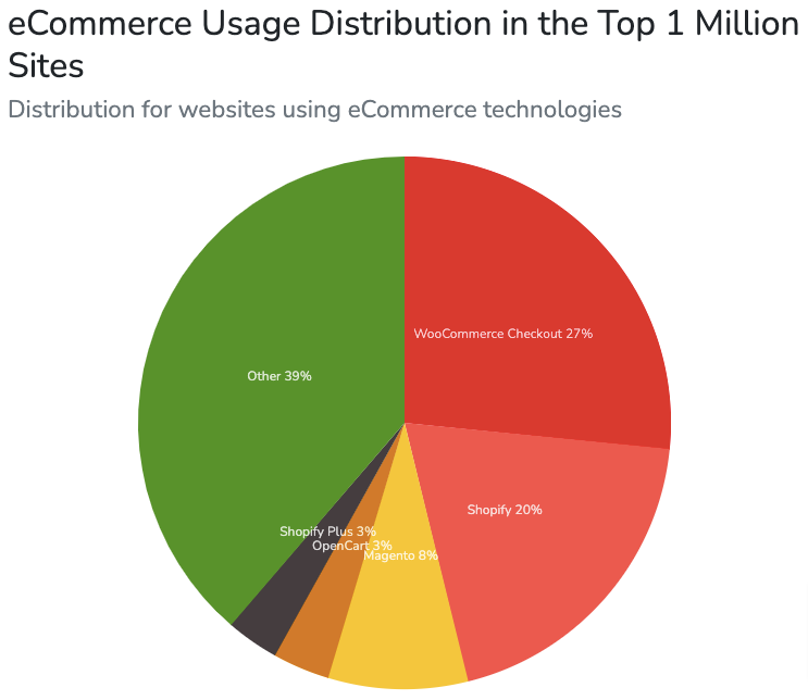 Según BuiltWith , actualmente hay 3,9 millones de sitios web activos que utilizan Shopify, de los cuales alrededor del 2% se encuentran entre el millón de sitios principales por volumen de tráfico en todo Internet.