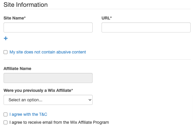Suponiendo que cumples con todos los criterios necesarios, puedes continuar creando tu cuenta de afiliado de Wix.