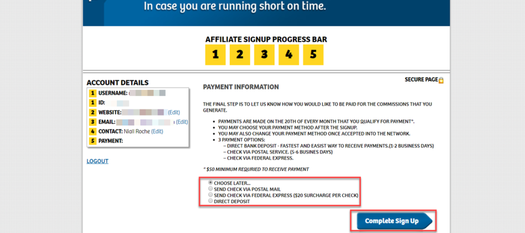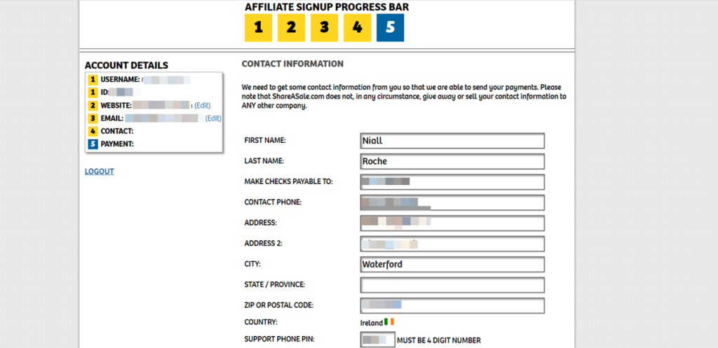 #4 Proporcione detalles de contacto completos; no olvide incluir a quién desea que sus cheques de afiliado se hagan pagaderos a: