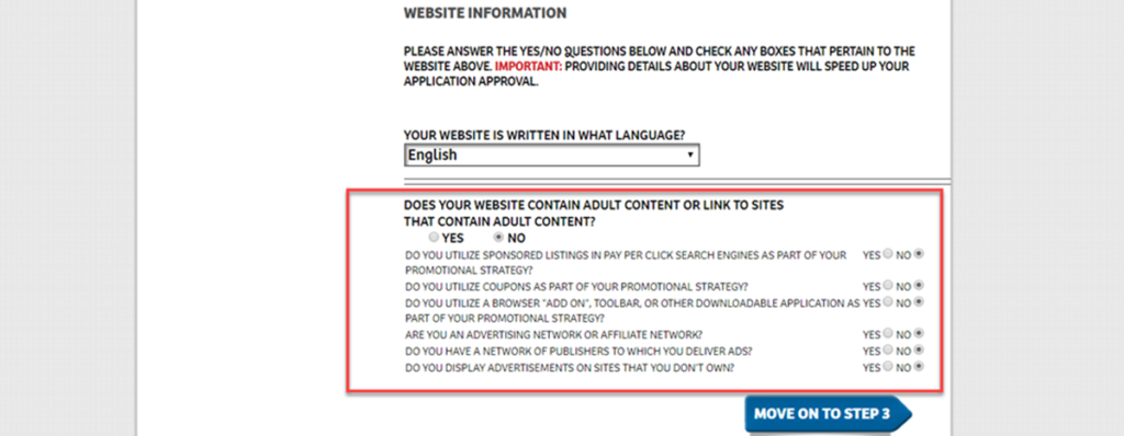 También son bastante estrictos con respecto a los tipos de sitios de marketing de afiliados que permiten en la red, es decir, sin contenido para adultos: