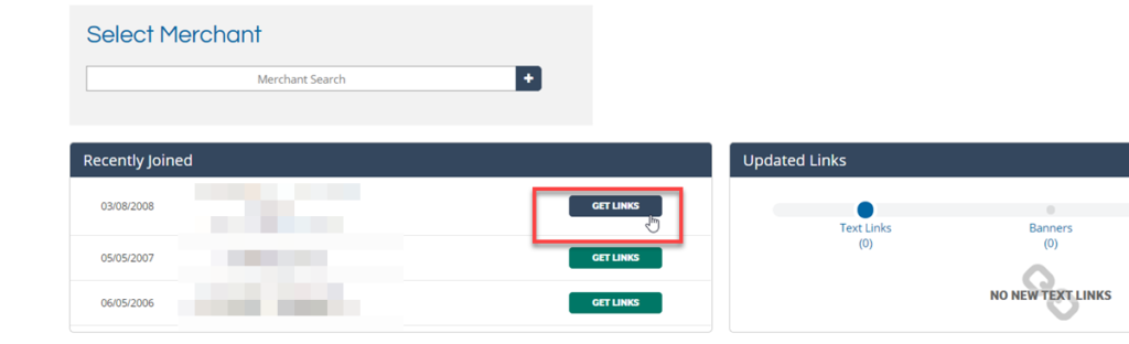 Haga clic en ‘Enlaces’ y ‘Obtener un enlace/banner’ en el menú de navegación superior: