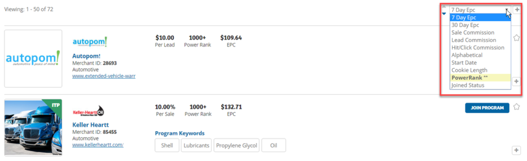 - Encontrar el programa de afiliados exacto que desea (EPC, pagos, etc.) es increíblemente fácil