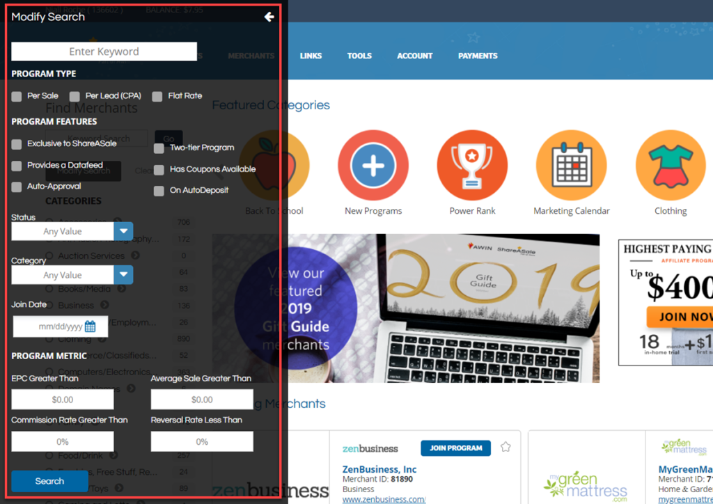 Nada nuevo hasta ahora, hasta que vea cómo ShareASale le permite filtrar entre miles de comerciantes.