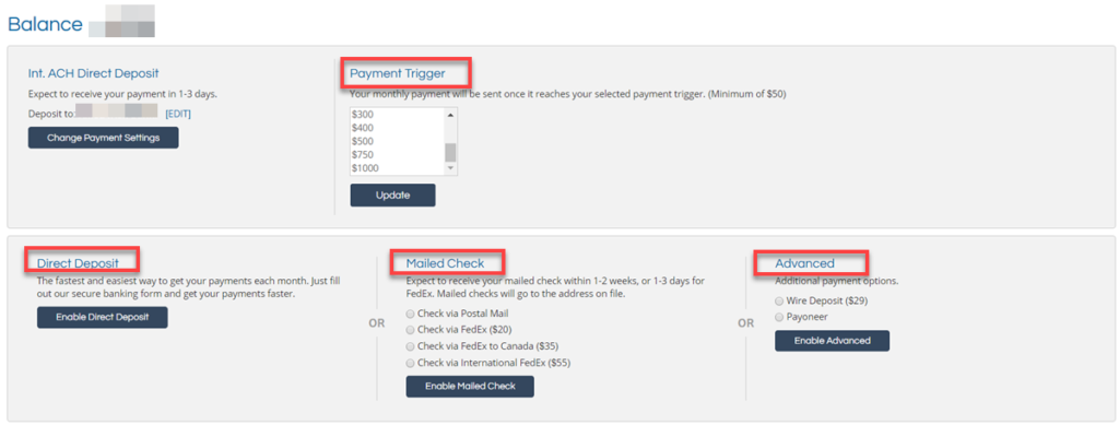 Necesitará acumular un saldo de $50 en su cuenta de afiliado antes de poder activar un pago de ShareASale.
