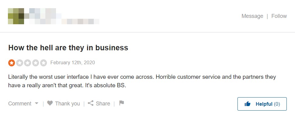 Esta persona no está contenta con ningún aspecto de la red, desde la interfaz hasta los comerciantes y todo lo demás.