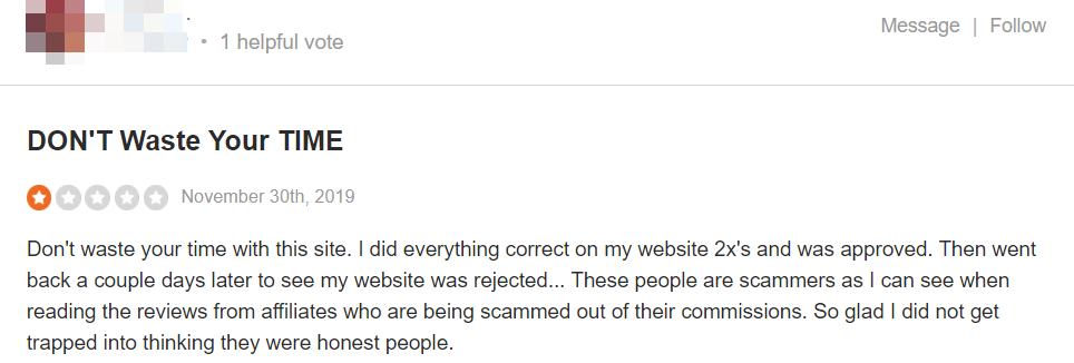 Y ahora llegamos a la parte de la revisión que a los fans de Schadenfreude les encantará: los comentarios de los afiliados.
