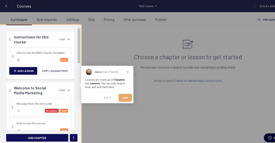 Si eliges probar Thinkific y ver cómo es el flujo de trabajo de creación del curso, no es como si estuvieras empezando desde cero.