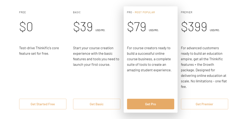 - Thinkific tiene muchas funciones que solo están disponibles por un precio elevado