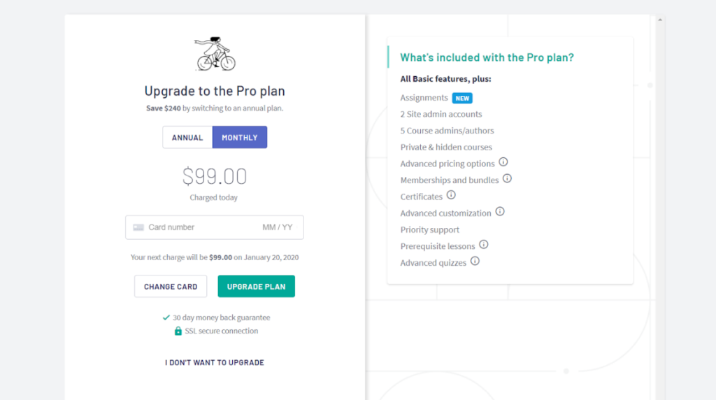 Si ya gana algo de dinero con sus cursos, es bueno probarlo desde el principio, porque le permitirá usar Drip, cupones, herramientas de marketing de afiliados e integraciones de marketing por correo electrónico.