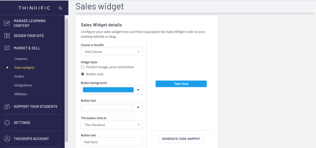Pero eso no significa restar importancia a sus poderosas funcionalidades de marketing y ventas: los cupones, los widgets de ventas y el marketing de afiliación le ayudarán a vender cursos en línea.