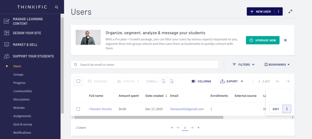 Además, obtendrá el paquete de crecimiento de Thinkific, que le permite realizar análisis avanzados y gestión de estudiantes.