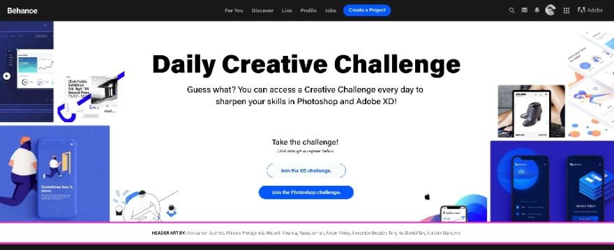 Si usa Photoshop o Adobe XD , participe en los desafíos creativos diarios. Esta es una excelente manera de involucrarse en la comunidad y también de repasar habilidades que de otro modo no tendría.
