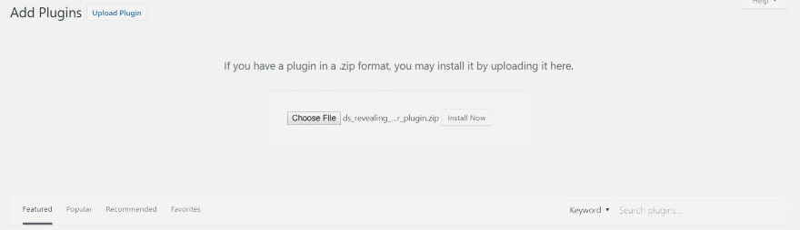Este complemento es sorprendentemente simple de usar. Simplemente cargue y active el complemento. En el tablero, vaya a Complementos > Agregar nuevo > Cargar complemento. No se requiere ninguna otra configuración. Una vez que activa el complemento, funciona automáticamente. Es en todo el sitio. Cualquier cosa que tenga en su área de pie de página se revela en el desplazamiento. No hay módulos o configuraciones para tratar. La última sección se mostrará con una sombra de cuadro.