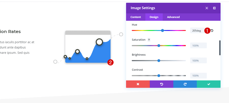La primera opción es una que te permitirá hacer cambios realmente rápido, sin tener que usar nada más que el Divi Builder . Estamos hablando de las opciones de filtro de tono que le permiten realizar ajustes de color en cualquier imagen que cargue o use en un sitio web. Sin embargo, al usar la opción de filtro de tono, su elección de color es limitada y afectará a todos los colores que se usan en las ilustraciones, en lugar del color de énfasis solamente. Es la forma más fácil y rápida de modificar los colores de tus ilustraciones sin necesidad de utilizar un programa externo.