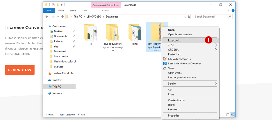 Obtendrá una carpeta comprimida dentro de su carpeta de descargas. Continúe y descomprima esa carpeta de inmediato.