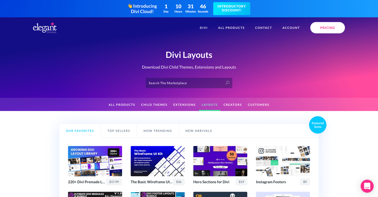 Divi Marketplace es un depósito en línea de temas, complementos y diseños secundarios de Divi de terceros. Es donde los desarrolladores y diseñadores de Divi pueden cargar sus creaciones y ofrecerlas para comprarlas o descargarlas de forma gratuita. Hay miles de activos hermosos en Divi Marketplace y hoy le mostraremos cómo guardar sus paquetes de diseño de Marketplace en su Divi Cloud, nuestra última función en el universo Divi.